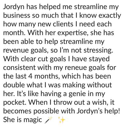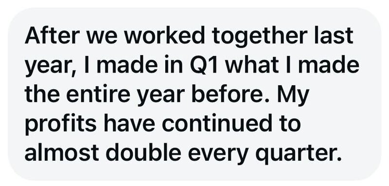 This mom of three brought me on to help simplify her offers, streamline her systems and create a plan to help her sell in a way that felt good to her. As a result, she was able to make in Q1 what she had made the entire year before and continued to see increases in her profit.